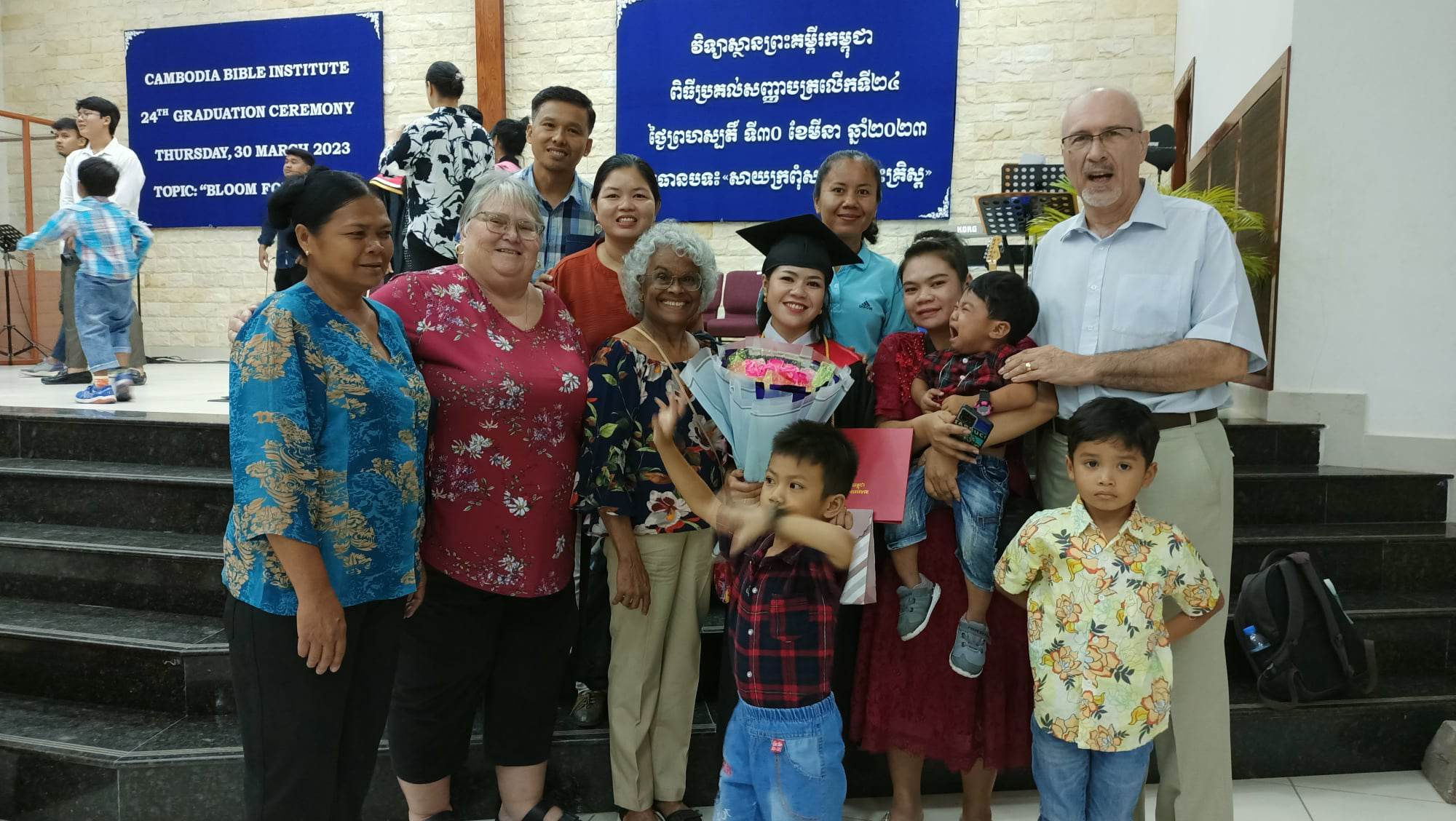 Congratulations to Karona for her brilliant achievement in finishing a Bachelor’s degree in Bible college. We are very proud of her for all her efforts in climbing the educational ladder. A brief story about Karona, she came from a broken family from rural Kandal province. Her father left his wife when Karona was in her mother’s womb, her mom had to carry her and her older sister who was about 1 year old. Latter on, her mom remarried and had another baby boy. Karona’s mom had to send her and her sister to live with one of their aunties who live in a rural area of Battambang province. Since she was just a little girl, Karona had to work hard to help her aunty sell vegetables before and after school every day until Grade 2.